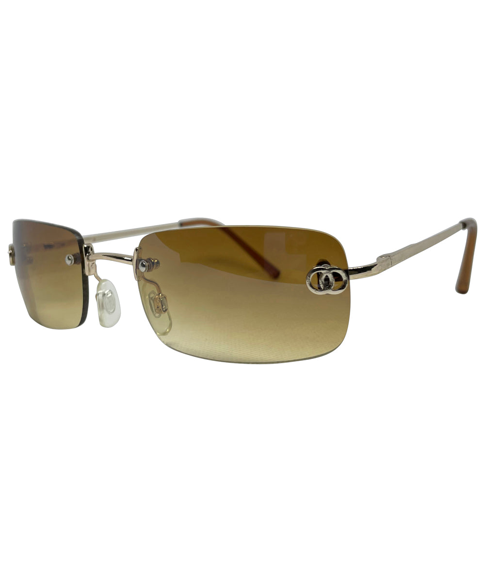 DELICIOUS Rimless Shield SunglassesJelly Brown/Amber-Giant Vintage Eyewear